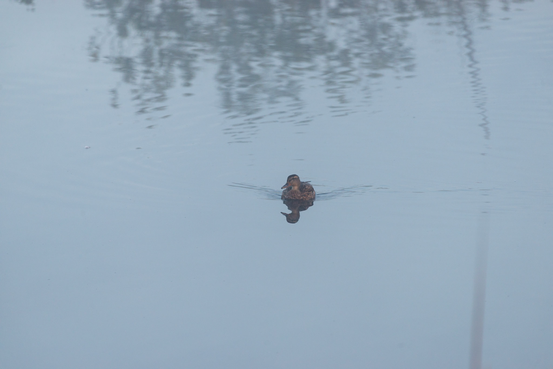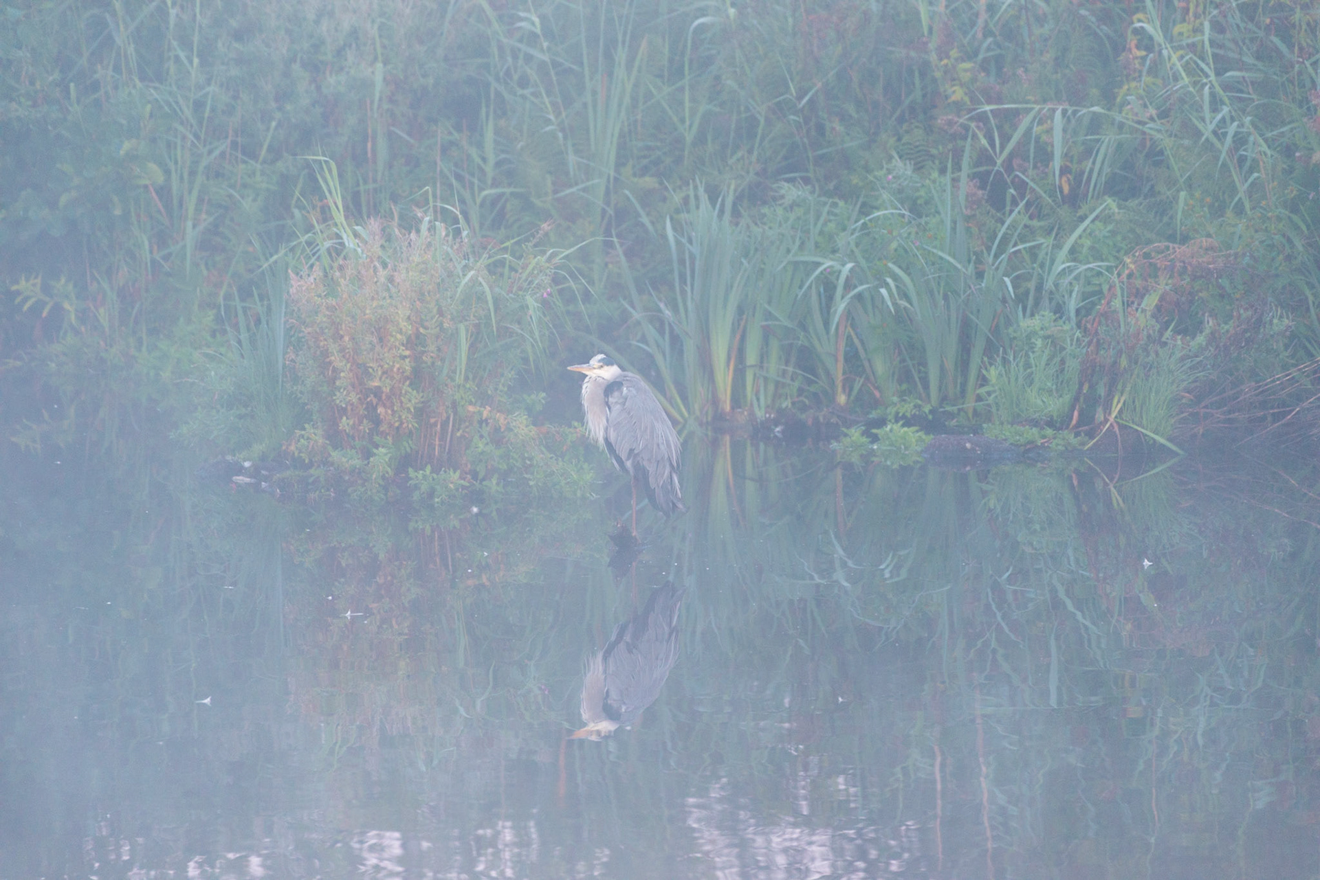 Solen er ved at opløse tågen over søen, men der er stadig en følelse af ro men også en årvågenhed - for hvad gennem tågen egentligt